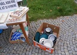 Co můžete přinést na prodej? Podívejte se na fotografie - úplně cokoli :-) Prodávalo se nádobí, keramika, oblečení, boty, knihy, ... Pokud byste chtěli vyčistit domov od nepotřebných věcí, které by se možná hodily někomu jinému, budete je moci přinést na jaře na další bleší trh nebo do nějaké naší sbírky materiální pomoci. V říjnu budeme otvírat Místo materiální pomoci s charitním obchůdkem. Více informací se dočtete na našich stránkách, ve Zpravodaji města Vlašim nebo na nástěnkách. Budeme se těšit na viděnou.