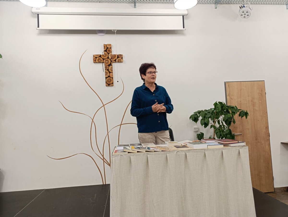 Kateřina Lachmanová nám představila část současné produkce křesťanských knih.