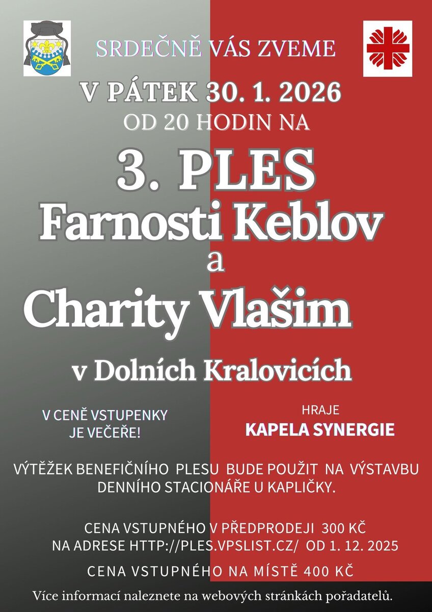 Už nyní se rozbíhají přípravy na 3. ples farnosti Keblov a Charity Vlašim, který se uskuteční v pátek 30. ledna 2026 v Dolních Kralovicích.