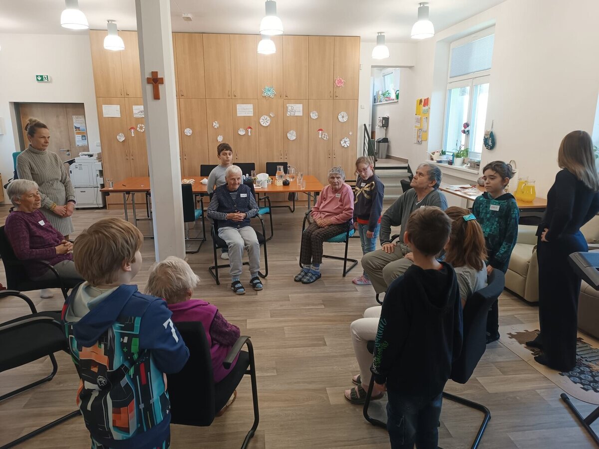 - V pondělí 15. 12. jsme přivítali návštěvu trojročí Montessori Vlašim ze ZŠ Sídliště. Ve stacionáři nám ukázali, jak to může vypadat před Vánoci v Ježíškově dílně, a popovídali si s našimi seniory. Poté se přesunuli do spodního sálu na výstavu betlémů.