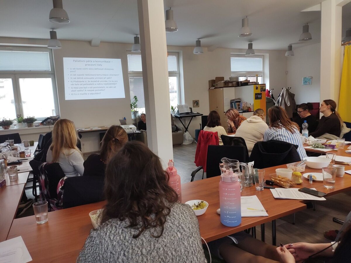 Na kurzu jsme se společně potkaly, jak sestřičky domácí zdravotní péče, tak osobní asistentky a pečovatelky z terénních služeb, tak pracovnice denního stacionáře. Sdílely jsme zkušenosti ze své práce i rodin. Prakticky si vyzkoušely, jak těžké může být komunikovat s člověkem, který ví, že smrt je blízko, nebo s pozůstalými.