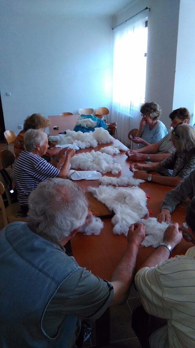 nemocnicích. Panenky slouží k popisu lékařského zákroku , který budou děti podstupovat. Malí pacienti si je mohou sami dotvořit barvami. Po ukončení nemocničního pobytu si je odváží domů. Materiál na výrobu přivezli členky klubu Kiwanis Golden Prague při své návštěvě. Do Prahy si odvezli již více než 200 hotových panenek. Pomohlo by nám, kdyby se do přípravy náplně zapojilo více osob. Náplň byla dodána v zhutnělém stavu. Panenky se s ní špatně plní, je nutné načechrat ji.